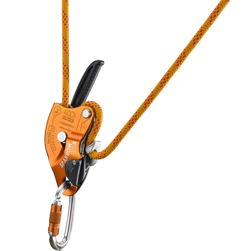 Descensor autofrenante para trabajos verticales, diseñado para soportar altas cargas de trabajo. Permite al operario descender por la cuerda de trabajo, posicionarse en el punto de intervención y volver a ascender por la misma.