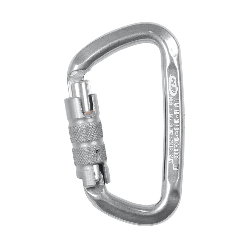 Mosquetón 2 tiempos, fabricado con propiedades dieléctricas que permite para trabajar en ambientes expuestos a arco voltaico. Tiene una forma ovalada que permite posicionar de forma óptima los aparatos con aislación dieléctrica, teniendo una protección contra la electricidad. Su diseño facilita la manipulación al usuario.